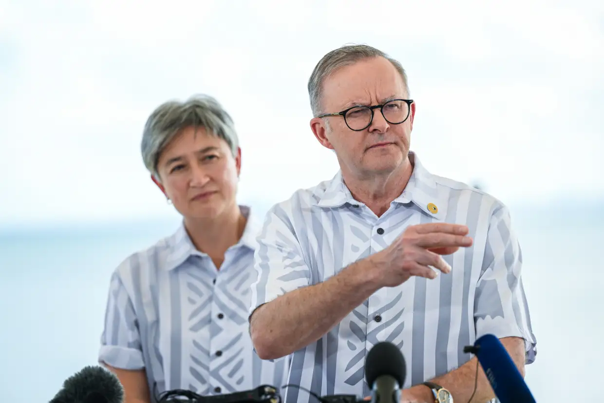 Image: Prime Minister Anthony Albanese and Foreign Minister Penny Wong at the Pacific Islands Forum in July. Credit: Joe Armao